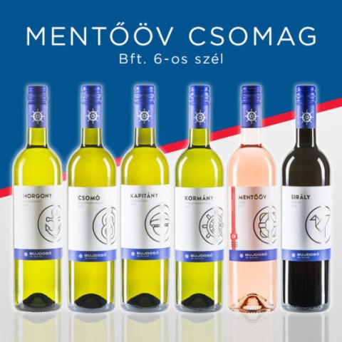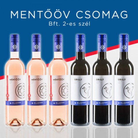 Ebben a csomagban Bujdosóék 2 kedvelt borából találtok 3-3 palackot: a Sirály Merlot egy igazán jól iható, szupergyümölcsös vörösbor, míg a Mentőöv egy ropogós rozé, ami tisztán és fröccsnek is jó választás.