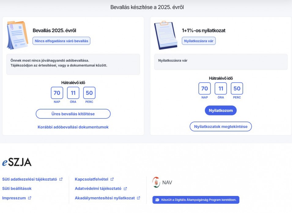Amennyiben rendelkezik Ügyfélkapuval, nyilatkozatát benyújthatja elektronikusan az e-SZJA webes felületen az online kitöltő segítségével vagy a bevallással együtt az EGYSZA lapot kitöltve, vagy attól függetlenül, a 25EGYSZA nyomtatvány kitöltésével. Az Ügyfélkapuval nem rendelkező adózó a kitöltött 25EGYSZA nyomtatványt postai úton juttathatja el az adóhatósághoz, vagy leadhatja személyesen a NAV ügyfélszolgálatán.