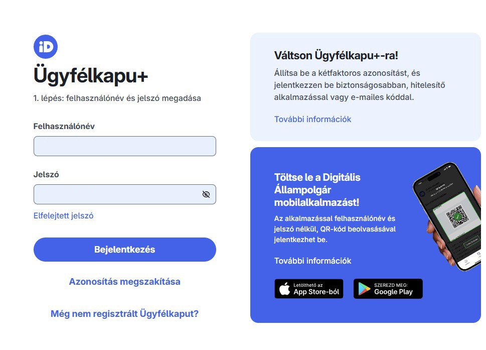 Kattintson a „Bejelentkezés” gombra, amely az Ügyfélkapuhoz irányítja.
