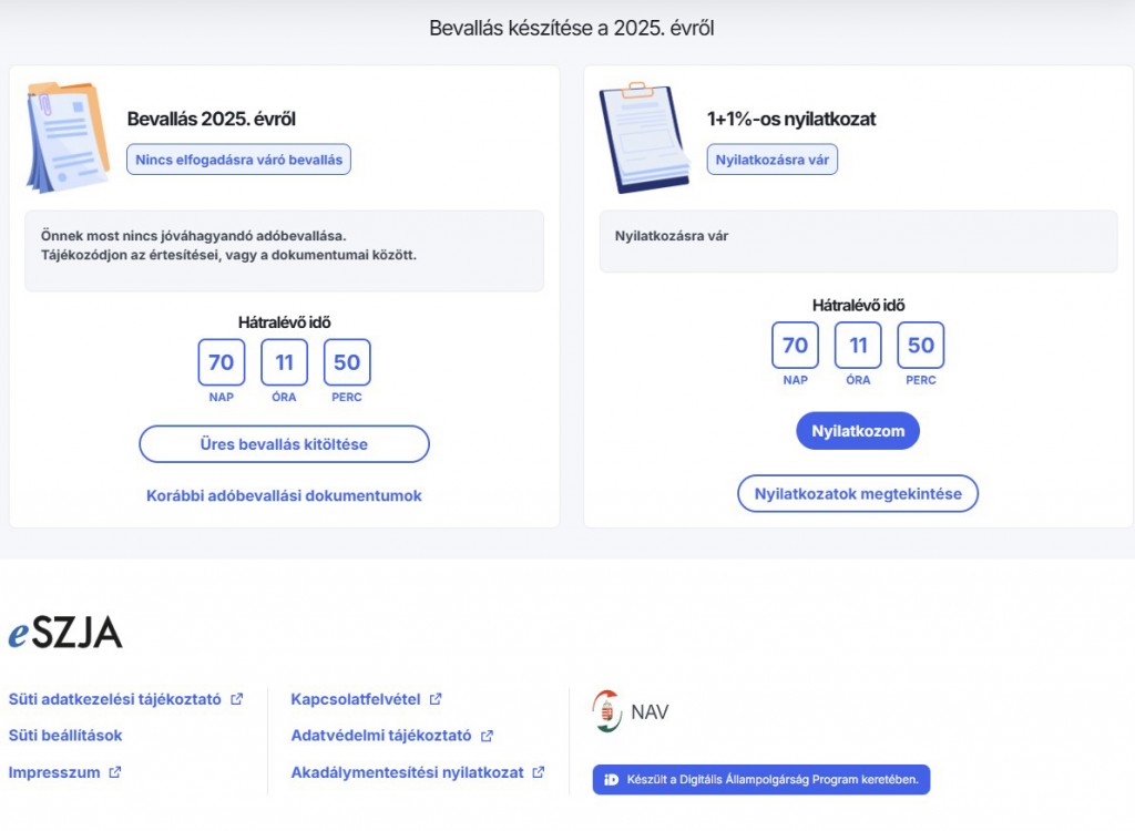 Írja be felhasználónevét és jelszavát, majd lépjen be az oldalra. Ott a jobb oldali 1+1%-os ablakban válassza az „1+1%-os nyilatkozat- Nyilatkozom” gombot.